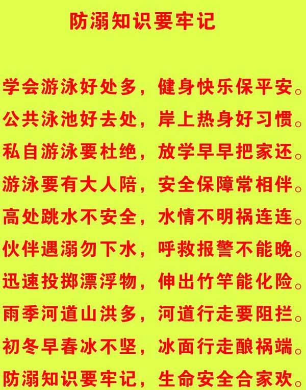通知强调,要做好假期中小学生预防溺水工作。各地教育行政部门和学校要结合实际,充分利用图书、光盘、挂图、卡片等安全教育资源,对预防溺水教育工作进行再布置、再落实,确保防溺水教育全覆盖。学校要在暑期全面开展学生安全千万家教师家访活动,特别要一个不漏地提醒每位家长务必承担起暑期对孩子的安全监管职责,切实看护好孩子,坚决防止孩子在没有大人看护的情况下私自下水游泳玩耍。校长还要同学生家庭所在地的村委会、居委会等基层组织普遍进行一次沟通,共同商量做好有关基层组织行政区域内水塘、河流等水域警示标志的设立工作,特别要落实水域包干责任人,加强水域巡逻监管,防止暑期溺水事故发生。