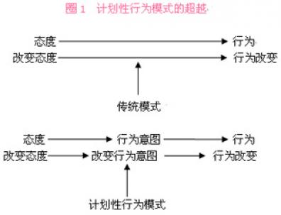 依据“理性行为模式”发展而来,是目前改善健康行为的主流理论。简称TPB。菲什拜因(Fishbein)提出理性行为模式(the mode of reasoned action),其假设是:行为意向是行为的直接决定因素,其他影响行为的因素是透过行为意向这一媒介以影响行为。计划性行为理论的关键前提是,人们依据可靠证据作出理性的思考,然后作出决定并表现行为。它强调行为是已经计划的,从某种程度上说,计划的过程是为了达成个人的意图。因此,根据该模式,个人意图是决定行为的要因,意图本身由3个要素组成:①个人对特定健康行为的态度;②社会既定规范或习俗,即个人相信别人认为他或她应该如何表现;③对行为的控制,个人相信自己已经具备充分的技巧和能力足以克服外界的困难,并完成计划。该模式重视每一个影响因子,而个人的信念对每个因子赋予不同的价值,在这一点上计划性行为理论与健康信念模式相同。